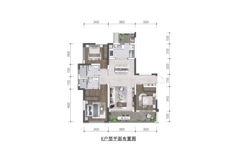 E户型 123㎡ 三室两厅两卫