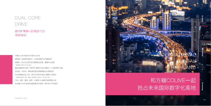 作为成都首个COLIVE社区,方糖funtown开创性地引入了风靡全球核心都会区的【资产型居住产品】。项目通过co-working、co-living、co-funning三大创新体系,为都市新锐打造"工作居住+社交娱乐"的全新生活方式。开发商持有70%商业体量,配备完善的COLIVE配套系统,并联合仲量联行共同保障年轻群体的品质生活需求。