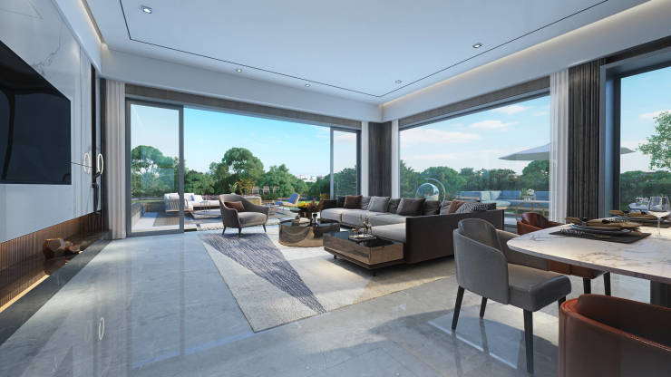 无界生活哲学。50㎡奢阔主卧套房搭配9.2米宽厅,构建多元社交空间;270°环幕观景露台实现自然与建筑的完美融合,多功能可变空间满足全龄段生活需求。