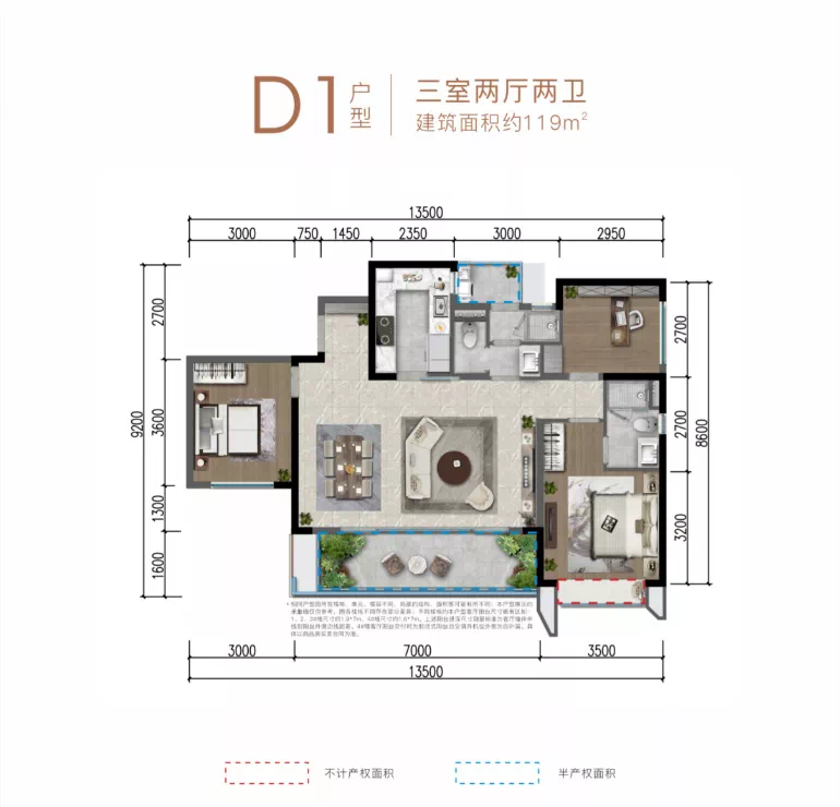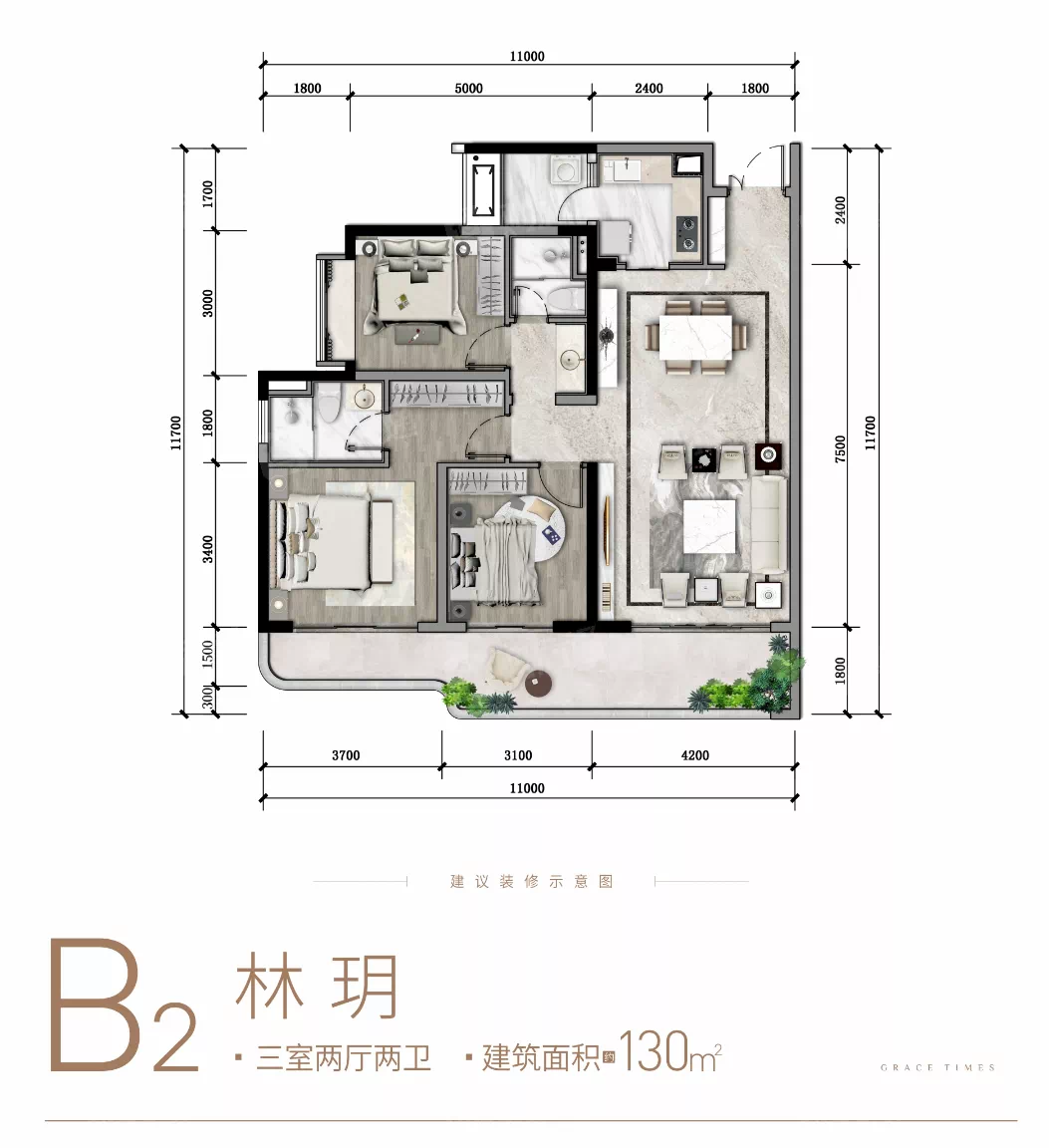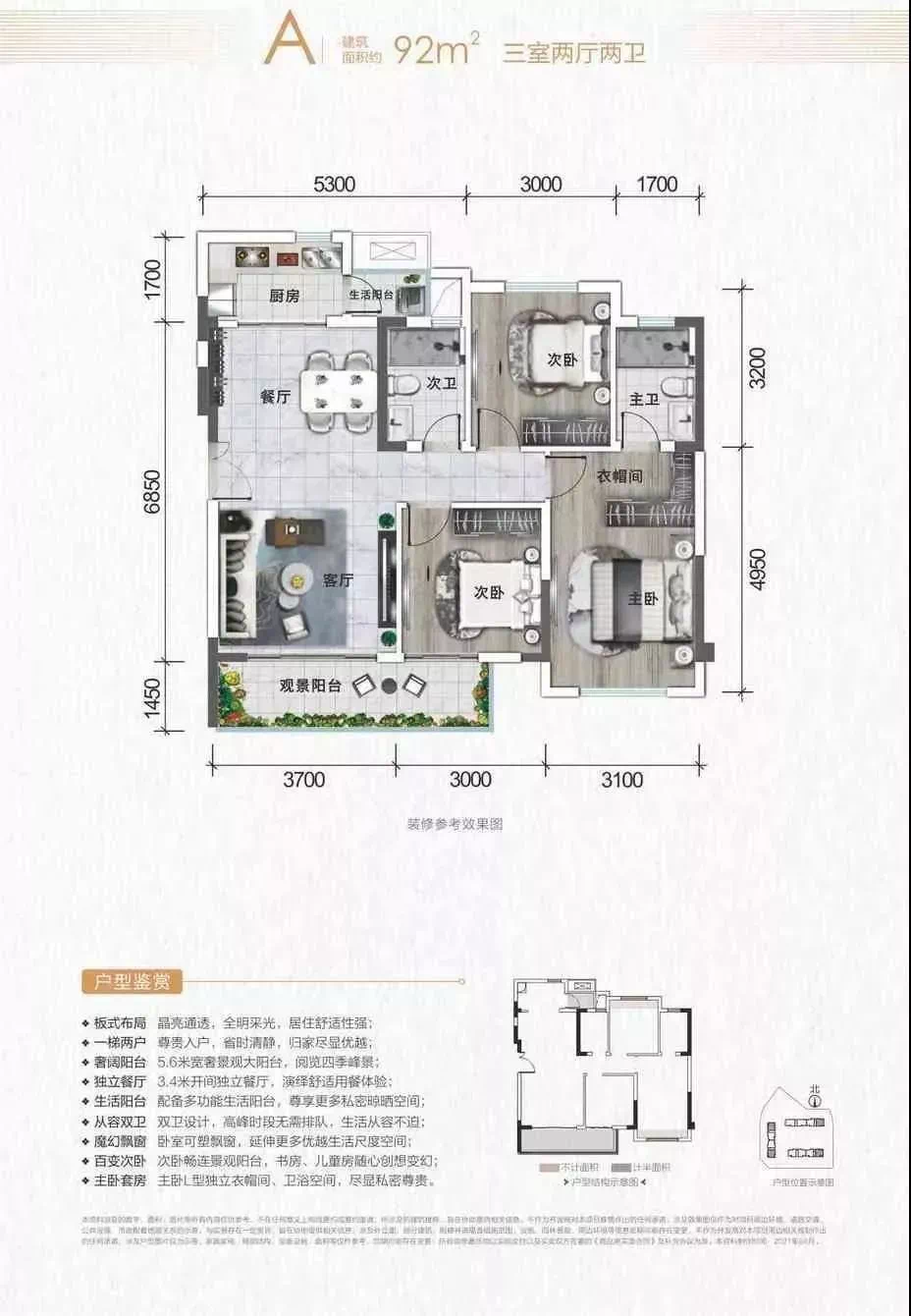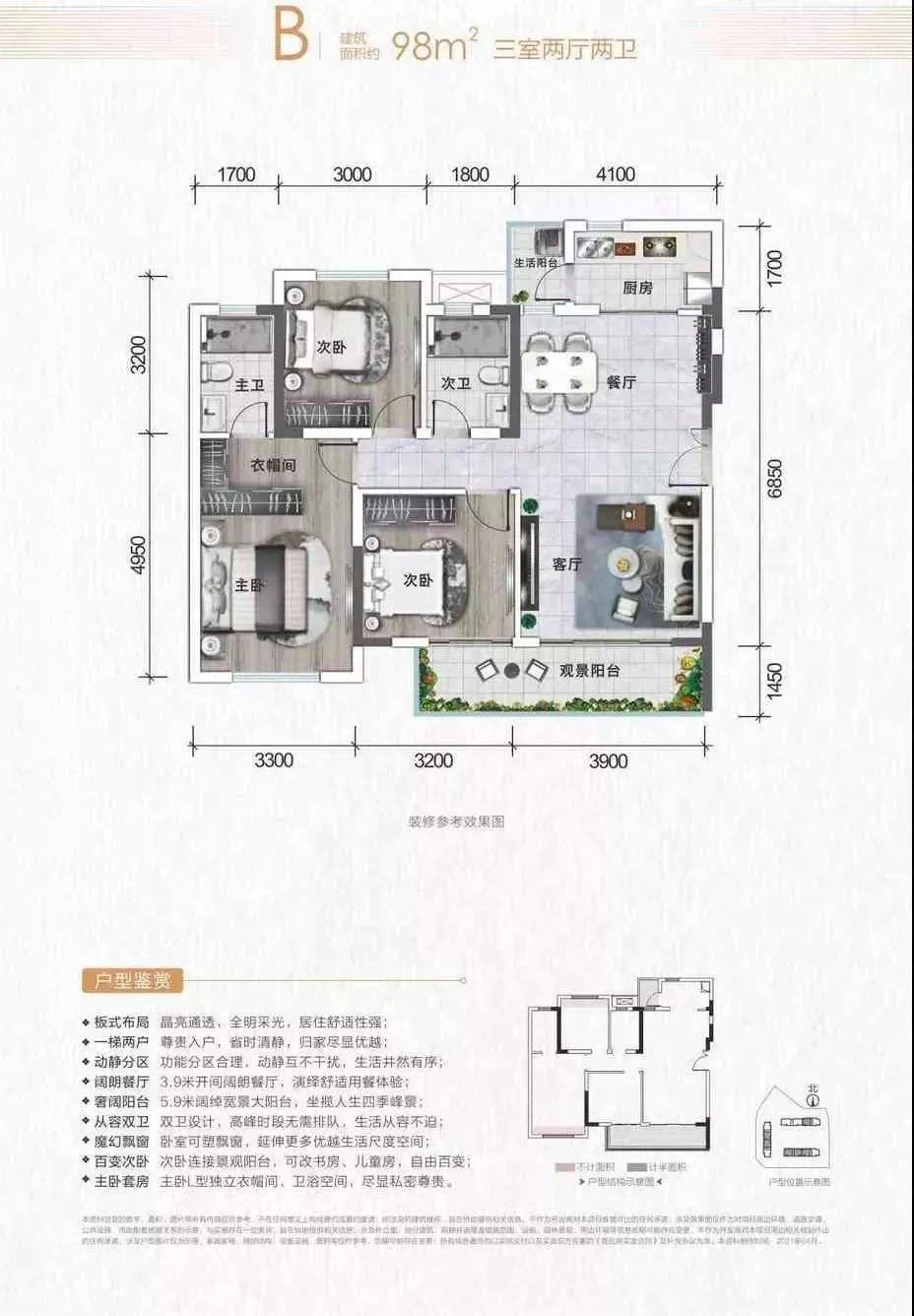 ▷ 国宾上林栖建面约130㎡户型项目建面约130㎡户型,也设计为套三双卫,在已经拥有生活阳台的前提下,项目还将景观阳台做到了长约11米,不得不说,很有诚意了。据悉,项目目前还有少量房源在售。