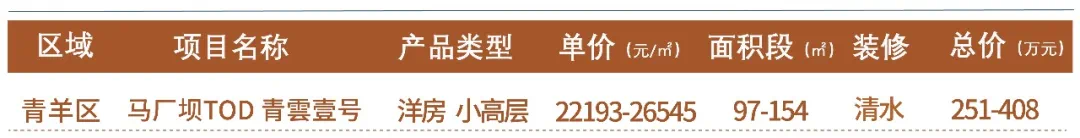 ▷ 马厂坝TOD青雲壹号效果图项目上批次推出的是一期B地块和D地块,产品为10-15层,纯板式结构,清水交付,共计499套,销售单价22193-26545元/㎡,总价约251万起。主力户型为建面约121㎡套三、137㎡和154㎡套四。