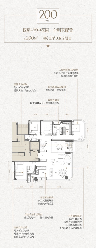 梯户比:260㎡:3T2 ;240/200㎡:2T2