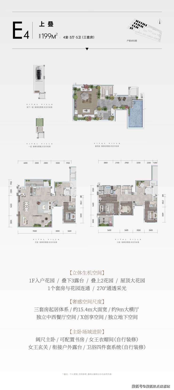 ✅ 建面199-235㎡叠拼别墅(高端改善优选):总价700-990万元,即将加推221㎡热门户型;首创“五独立体系”,独立建筑单元、地下室、庭院、电梯及花园动线,彻底规避邻里干扰,实现叠墅独栋化体验;部分户型可灵活改造,适配家族聚居、高端社交等多元场景。