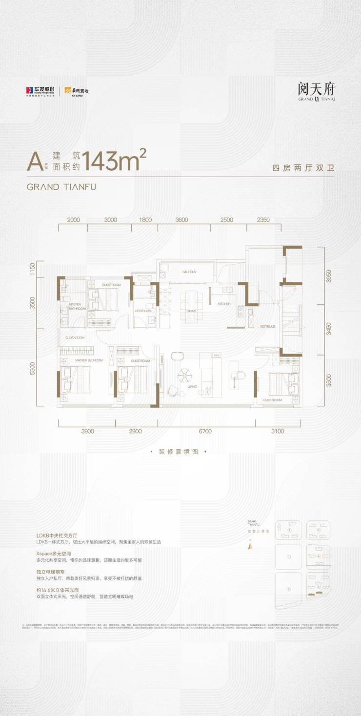 143㎡(四室两厅双卫);均价3.1-3.7万/㎡;总价450-530万