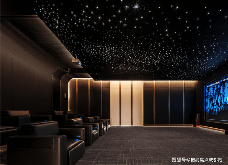 约60㎡专业级影音声效空间,星空顶下观影/KTV一键切换。