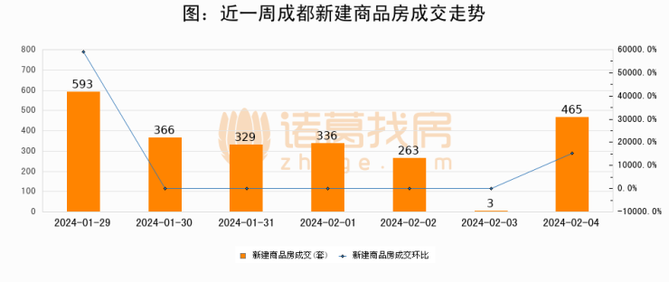 【成都成交日报】02月04日新房成交465套、二手房527套;涨价房源59套
