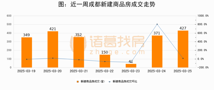 【成都成交日报】03月25日新房成交427套、二手房1295套;涨价房源64套