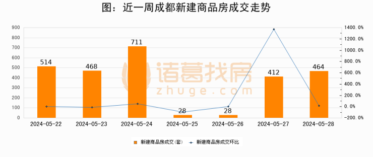 【成都成交日报】05月28日新房成交464套、二手房837套;涨价房源14套
