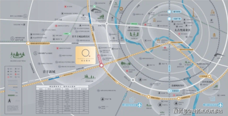 项目所在的青羊新城,为青羊源城与新城交界之处,既享源城丰富配套和生活,又享新城城市发展红利。2019年,青羊区政府官网正式发布青羊新城规划,青羊新城为三环苏坡立交外侧至温江界,总面积约42平方公里,管辖苏坡、文家、黄田坝、蔡桥、康河5个街道办事处,常住及暂住人口约36.7万。