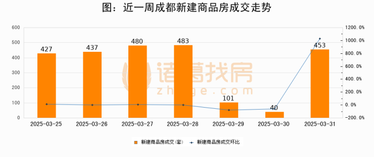 【成都成交日报】03月31日新房成交453套、二手房1123套;涨价房源57套