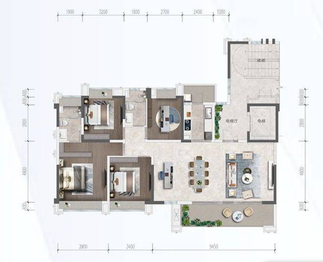 约8m宽敞开间,大尺度横厅+朗阔阳台,三厅设计,宽境生活从容有度,宽敞入户前厅,尊享精致归家礼遇,安全与静谧兼得,朗阔横厅设计,纯板式通透户型,清风穿堂,尽享境界人生,阔境阳台,拓展室内空间视野,一目揽景,品味不凡境界行政主卧套房,独立洗室,亨行政套房宽居体验。