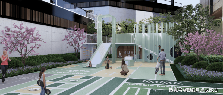 约260米环形跑道,大自然里的健身房。康体运动区、全龄健身生活区、架空层活力馆,以及儿童云端滑梯与运动墙,更具活力的社区场景,打造楼下五分钟活动空间,为亲子家庭提供互动娱乐的交流场景。