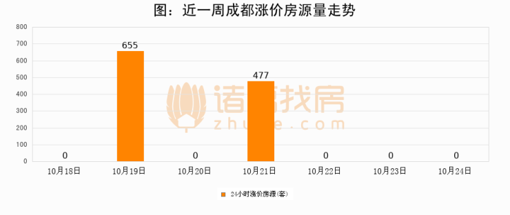 根据诸葛找房数据显示,成都24小时涨价房源量为0套,较10月23日持平。