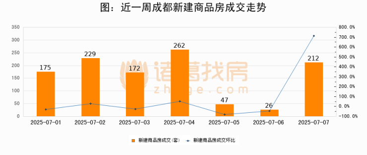 【成都成交日报】07月07日新房成交212套、二手房1079套;涨价房源2套