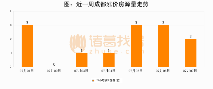 根据诸葛找房数据显示,成都24小时涨价房源量为2套,较07月06日减少1套,环比下降33.3%。与此同时,涨价房源占比小幅回落,对于购房者来说是一个入市窗口期,购房者可抓住时机入市。