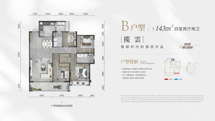 锦江平层143㎡A户型王者四房(四室两厅两卫(横厅)