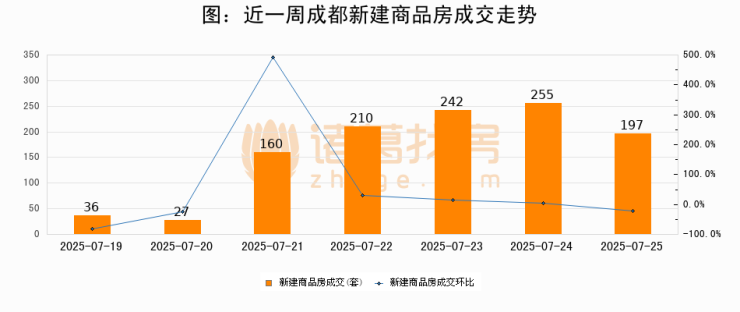 【成都成交日报】07月25日新房成交197套、二手房838套;涨价房源11套