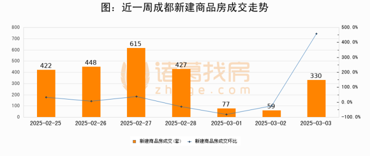 【成都成交日报】03月03日新房成交330套、二手房1116套;涨价房源138套