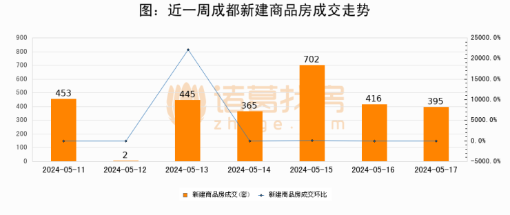 【成都成交日报】05月17日新房成交395套、二手房818套;涨价房源5套