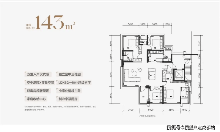 户型设计:126-143㎡全四房,高得房率实现空间跃升