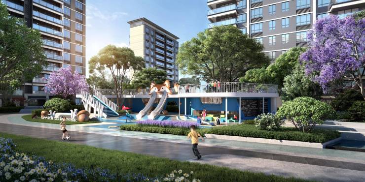 项目以现代简约设计语言,将建筑与景观有机融合。通过多层次绿化组团、艺术水景等元素,打造低密生态社区,营造"出则繁华、入则宁静"的理想人居氛围。