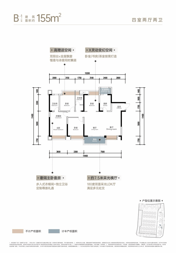 约214㎡奢居四房:约8.4m横厅,270°采光,双套房设计