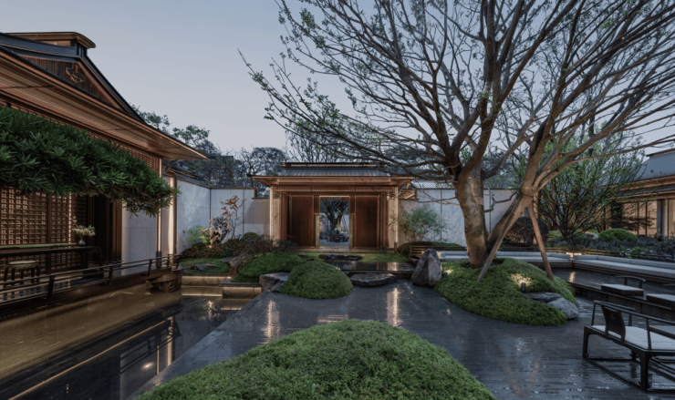 尤其难能可贵的是,项目购置了大量珍贵木材,其使用的朴树不惜重金从千里之外寻觅而来,大门口的罗汉松更是价值不菲,如此精益求精,把社区的品质感、氛围感直接拉满。