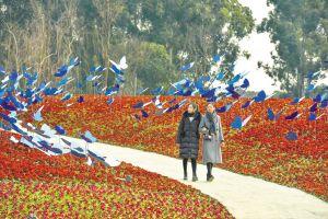 天府芙蓉园内,在鲜花簇拥的绿道上漫步令人心旷神怡