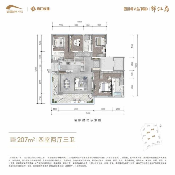 面积段:144、175、207㎡平层