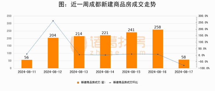 【成都成交日报】08月17日新房成交58套、二手房76套;涨价房源197套