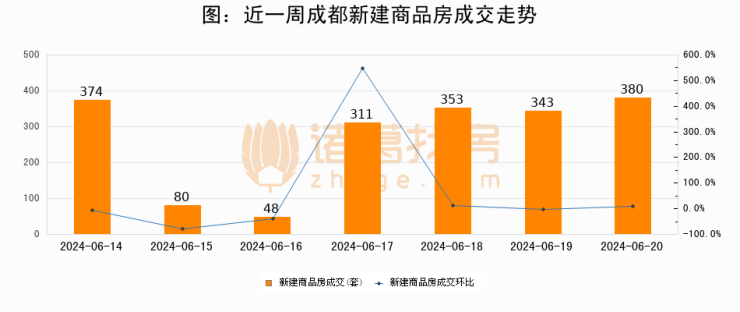 【成都成交日报】06月20日新房成交380套、二手房998套;涨价房源115套