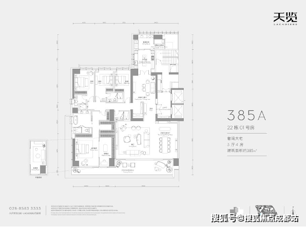 「LACADIERE 天览」二期,秉承“创造独一无二、可传世传承,真正意义的超级豪宅”之愿景。户户超大面积,以 385 ㎡