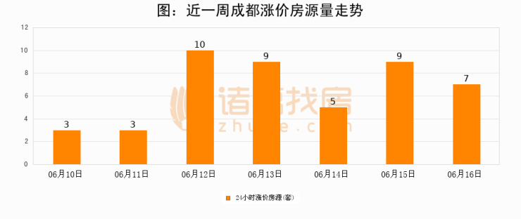 根据诸葛找房数据显示,成都24小时涨价房源量为7套,较06月15日减少2套,环比下降22.2%。与此同时,涨价房源占比小幅回落,对于购房者来说是一个入市窗口期,购房者可抓住时机入市。
