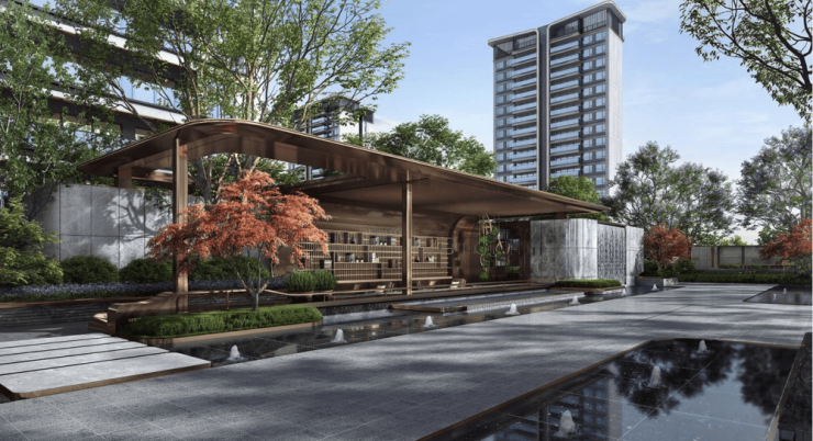 以围合式建筑布局,打造对标宝格丽的酒店式雅奢景观,四重归家礼序、林下花园、对景跌水、休憩卡座,一步一景,起承转合,营造独有的生活仪式感。