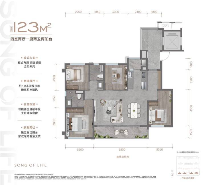 A01户型 建筑面积约123㎡ 四房两厅双卫