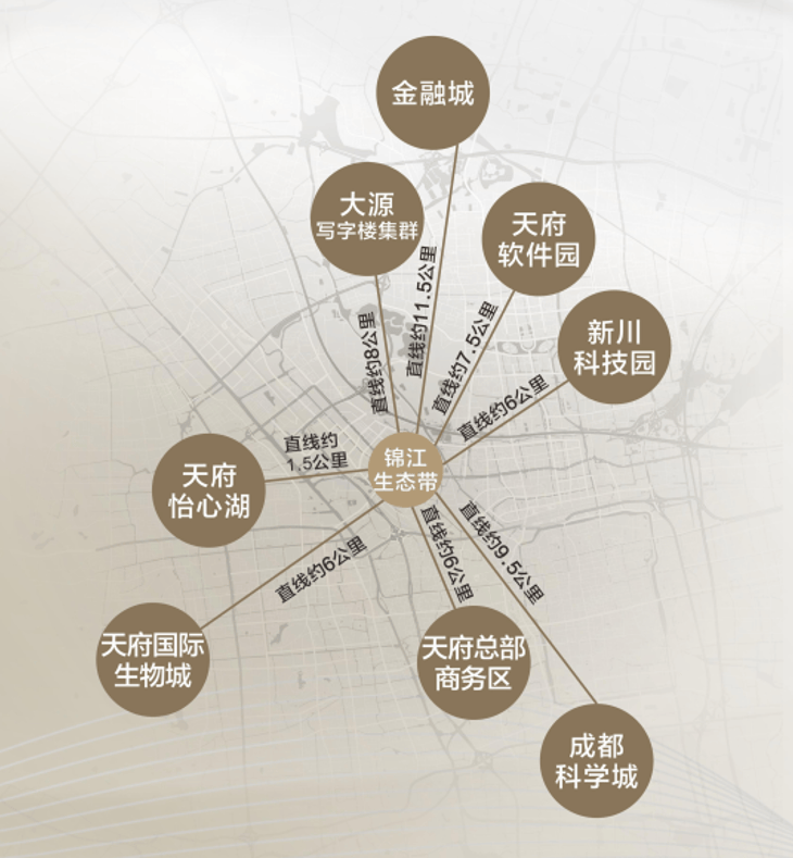 3.多公园:板块内距项目几百米,规划东西长度约1.5km天府森林公园(在建),占锦江生态带南区板块近一半的面积,将是未来周边居民散步清肺的极佳去处。直线距离1.5km内,麓湖山林溪谷公园、怡兴湖商务公园区、锦江绿道公园。南湖公园、毛家湾森林公园、永安湖城市森林公园、兴隆湖、天府公园等开车前往也是非常便利。