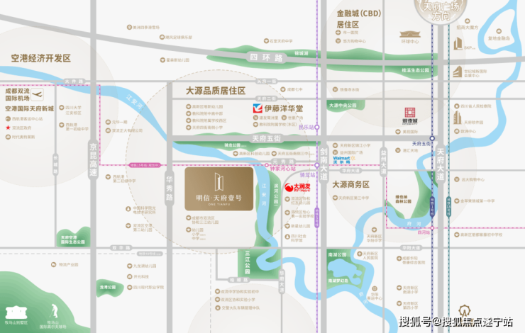地理位置:双流区华秀路江安河西侧,紧邻高新南区,属“大源南”板块,被业内称为“天府六街”。