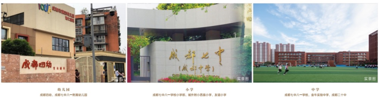 品质教育集群:成都四幼、成都七中八一学校、成都实验中学(行知校区)、成都行知小学、成都二十中全龄教育覆盖