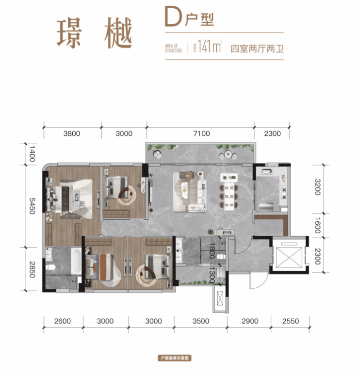 成长型户型设计:四居室格局突破过渡性住宅局限,双阳台平衡功能与情趣,可变空间适应二胎生育、老人同住等家庭结构变化,实现生活阶段的平滑过渡。