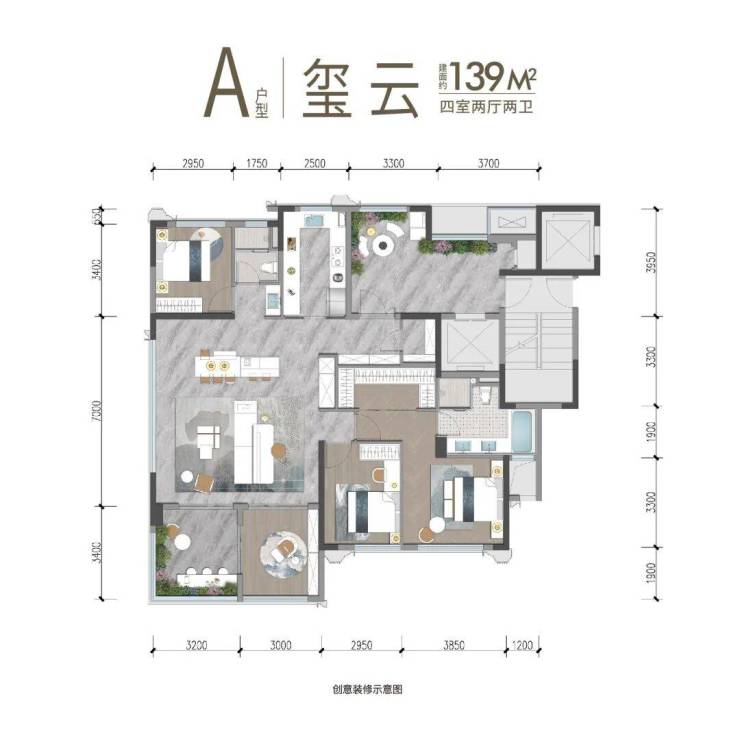 建面约114㎡户型创意装修图,非交付标准