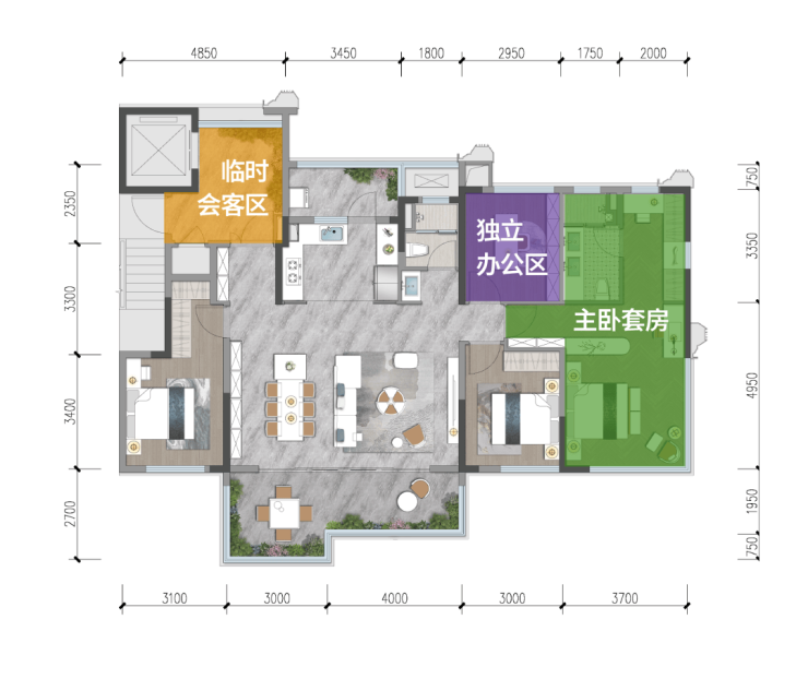 紧凑面积实现五房功能的全生命周期适配