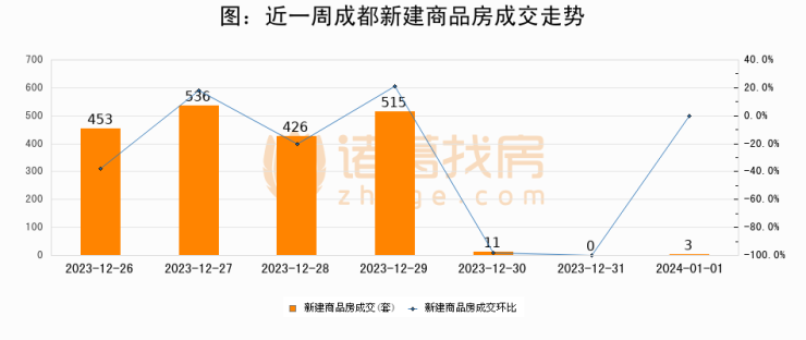 【成都成交日报】01月01日新房成交3套;涨价房源58套