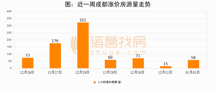 根据诸葛找房数据显示,成都24小时涨价房源量为58套,较12月31日增加43套,环比上涨286.7%。与此同时,涨价房源占比小幅扩大,业主信心有所提升。