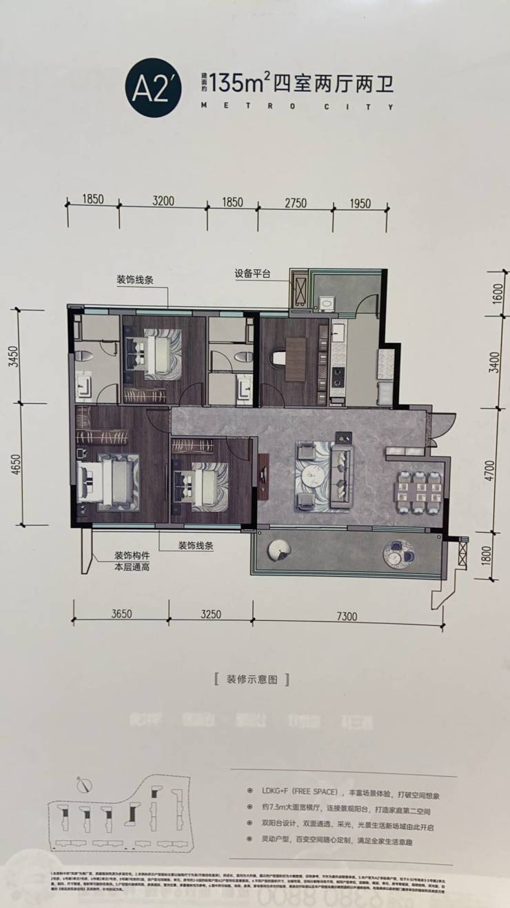 空间尺度:层高2.95-3米,公摊仅14.08%