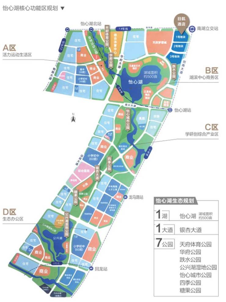 怡心湖作为天府新区的核心板块,上承高新区,下启天府新区 ,是新老城市CBD的交汇处。地处成都正南,2016年怡心湖板块概念的流出,经过7年时间沉淀,从一纸草稿到园区落地,如今怡心湖板块强势崛起,是引领公园城市示范建设的重要承载地。