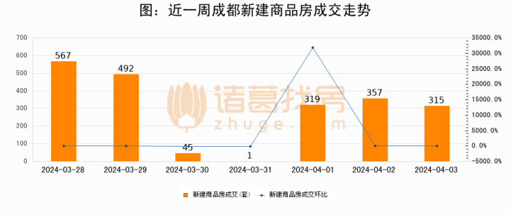 【成都成交日报】04月03日新房成交315套、二手房825套;涨价房源7套