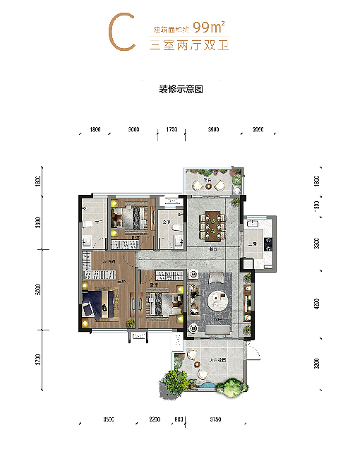 面积约99㎡ 一梯两户 低密舒居