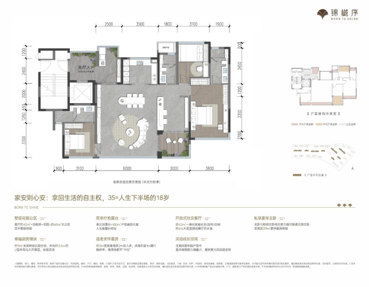 约42㎡的开放式社交厅与转角空中花园灵活衔接,可拓展为超60㎡的墅级公共空间,轻松承载家族聚会与社交庆典。升级版入户花园创新采用功能分区设计,将生态景观与家政玄关完美融合。主卧系统更支持与相邻次卧打通,打造约39㎡的奢适女王套房,展现极致空间可塑性。