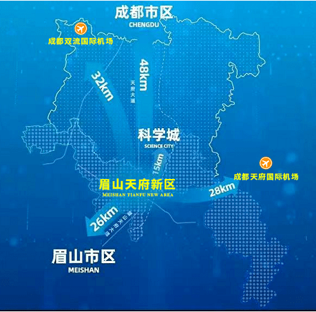 其次,眉山天府新区本身就是高级新区的重要组成部分,具有紧邻成都南拓发展核心区域的地理优势,可零距离承接成都南拓发展的产业红利。