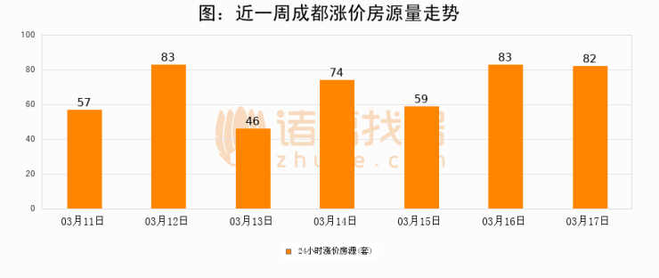根据诸葛找房数据显示,成都24小时涨价房源量为82套,较03月16日减少1套,环比下降1.2%。与此同时,涨价房源占比小幅回落,对于购房者来说是一个入市窗口期,购房者可抓住时机入市。